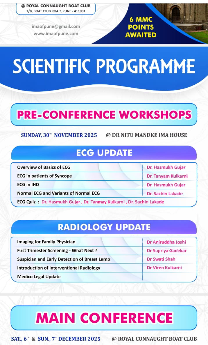 Greetings from IMA Pune. Our new team has taken over from 1 st April 22.